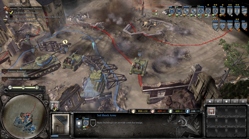 By the end of the campaign (on Easy) I was starting to get the basics down, but was running out of true single player content. There are some skirmishes to check out and bot matches, but jumping into these scenarios with AI allies seemed a bit useless at that point: more learning of specific skill sets to an overall game I'm probably not going to get much deeper into. There's multiplayer, of course, for those who are interested in that.. but I'm not ready to jump into the meat grinder against RTS animals who have been playing Company of Heroes 2 (and only Company of Heroes 2) non-stop since it released two years ago.
