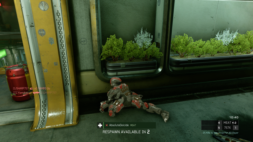 At first glance the multiplayer suite may look a little light; you choose from either Arena or Warzone playlists from the main menu. Arena has half a dozen or so playlists to choose from, and Warzone just has two. In practice the first option, Team Arena, should be the goto mode: it randomly chooses from a handful of objective based matches or straight up Team Slayer. These are fairly standard battles: Capture the Flag, Domination (called Strongholds), or Breakout, the new fast paced Swat-lite, one life affair that has it's own playlist. I'll admit that I historically have not been a fan of objective modes like CTF, but the small maps they are presented on in Halo 5 go a long way in making them fun to play. Swat is suspiciously absent from the rotation, otherwise I'd just pick this playlist and let it roll. Next is Team Slayer, which has been the standard 4v4 Halo staple since Halo 2, and it still holds up as the best overall experience in my opinion. Pure skill and teamwork to control and effectively use the power weapons is the only thing that matters, and the simple nature of it is timeless. The solo variation of Slayer is a blast as well, allowing for more chaos and the “tactic” of jacking other players kills. Breakout is new but welcome. Two teams of four fly into a stripped down, VR arena with no shields and try to flank/pull off some lucky shots to either eliminate the opposing team or capture a central flag. You have one life per round, and the first team to take five rounds wins. Swat is a breakneck mainstay with instant respawns and one headshot kills. You have to enter a Zen state and rely just on your twitch reflexes to pop your enemies in the face before they can react. There's also another, rotating sixth playlist that awards double XP for participation. So far Shotty/Snipers and Team Doubles have been featured.