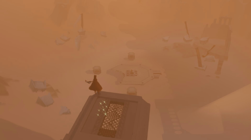 A short, simplistic, minimalist adventure that's easy on the eyes and your reflexes. Journey is an "art" game; it looks like an imported animated film hailing from some nondescript country that stuffy critics and hipsters would praise to death for a week or two. It plays like that, too. You have full control over a robed avatar as it travels across openish areas ranging from desert sands to dark caverns to icy mountain tops, eventually climbing to a light emitting peak that is ever-present in the background of your titular journey... an allusion to the "journey" we all take on the path from life to death because... you know... it's an "art" game, so what did you think it would be about?